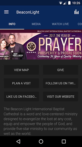 The Beacon Light International Baptist Cathedral app was developed with the Subsplash App Platform.