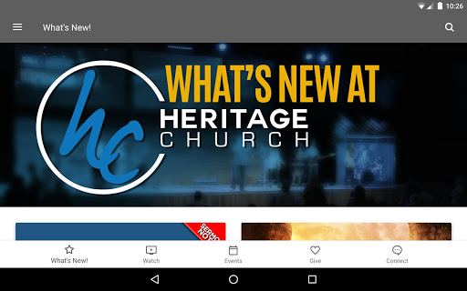 The Heritage Church app was developed with the Subsplash App Platform.