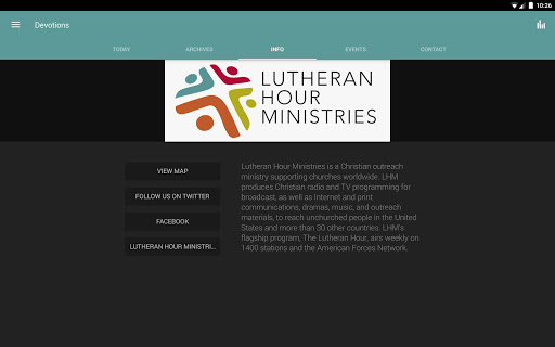 The Lutheran Hour Ministries Daily Devotions app was developed with the Subsplash App Platform.