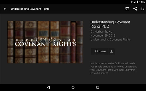 Welcome to the Faith Impact TV App an outreach of The Upperroom Bible Church! On this app you will have access of hours of powerful messages from our Pastors Drs. Herbert and Carol Rowe! You can share all of this powerful content with your friends via Twitter, Facebook, or email! We absolutely believe as a result of you hearing the Word of God through our Pastors you will have a clearer understanding of the Word! For more information about our ministry please log onto www.theubc.org. We love you and remember "Keep Believing and Receiving from God on Purpose!"