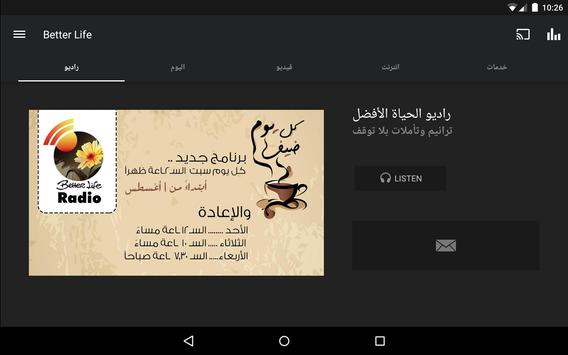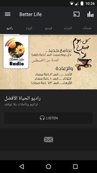 Through The Better Life Application, you can listen 24/7 to songs, devotionals and programs (Spiritual, Bible study, family-related, Motivational, Social). The application encourages and motivates you to develop a personal relationship with Jesus Christ, renew your mind and adopt biblically-based life principles. The application serves different ages (Kids, youth, adults), various sectors of the community (Women, men, families) and it addresses different Arabic speaking nations. You can contribute with your ideas, prayers requests and song requests using sms, Facebook and WhatsApp.