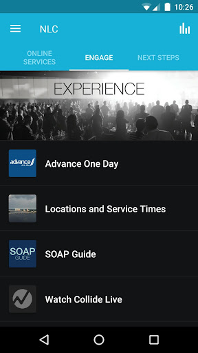 In this app you will have access to life-changing video and audio messages and relevant information about Next Level Church. Additionally, you can share the content that impacted you with your friends via Twitter, Facebook and email.