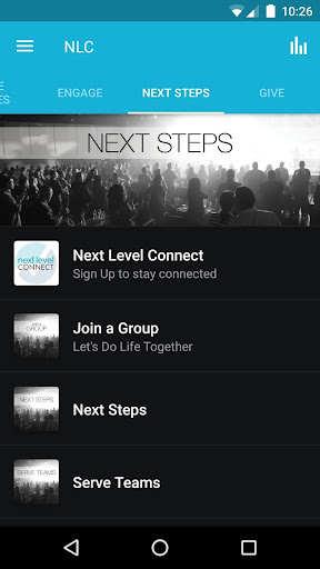Next Level Church exists to lead people to become fully engaged followers of Jesus.