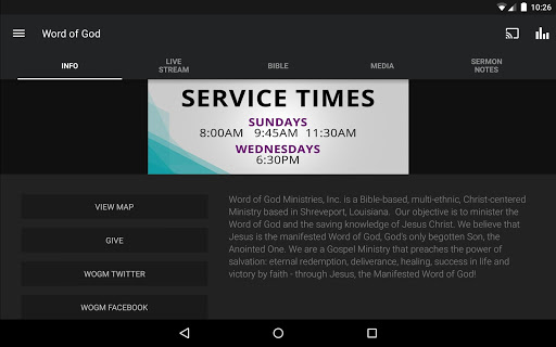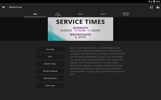 The Word of God Ministries App was created with the Subsplash App Platform.