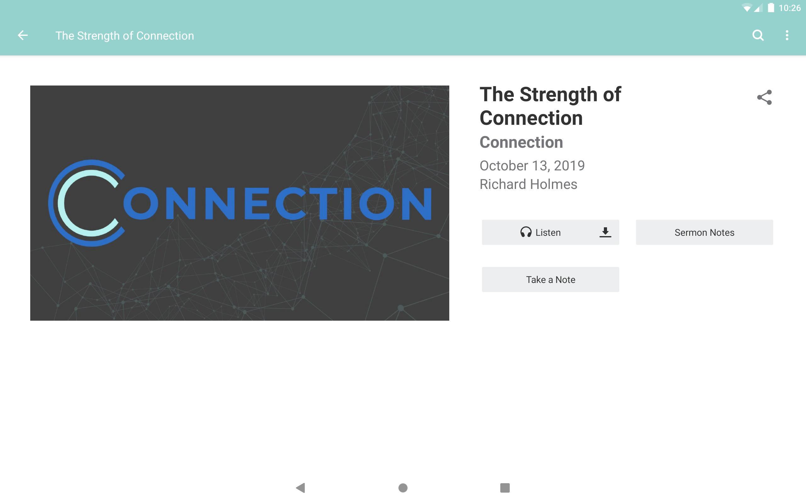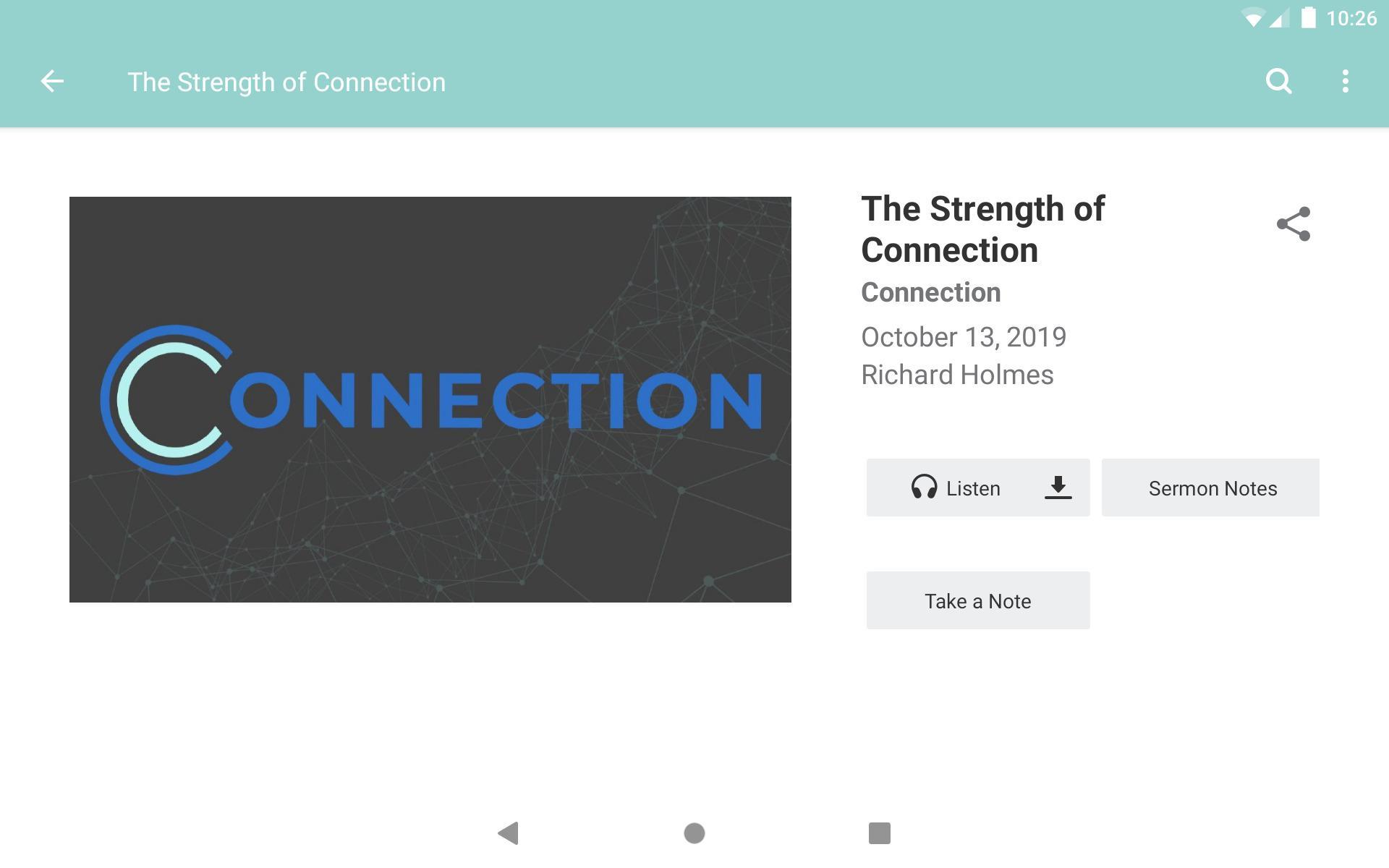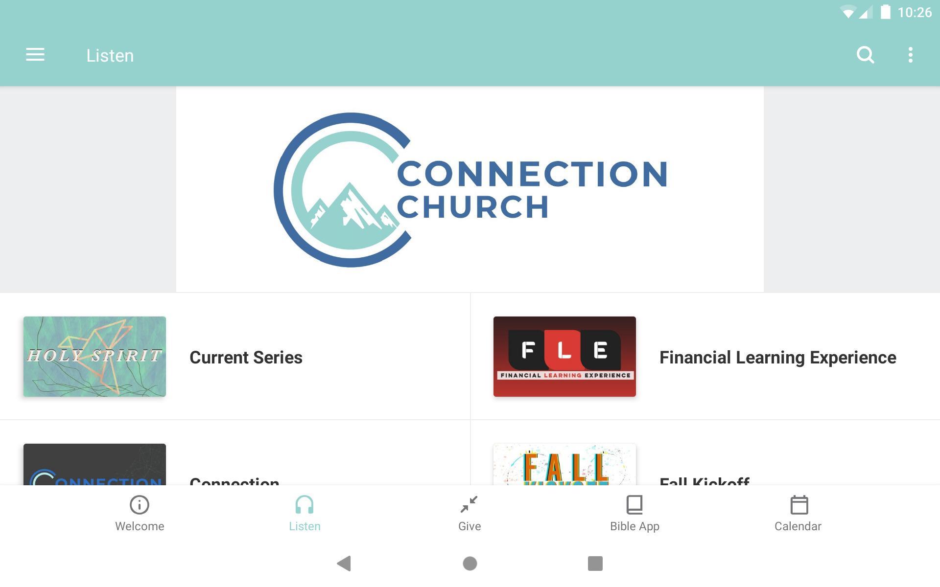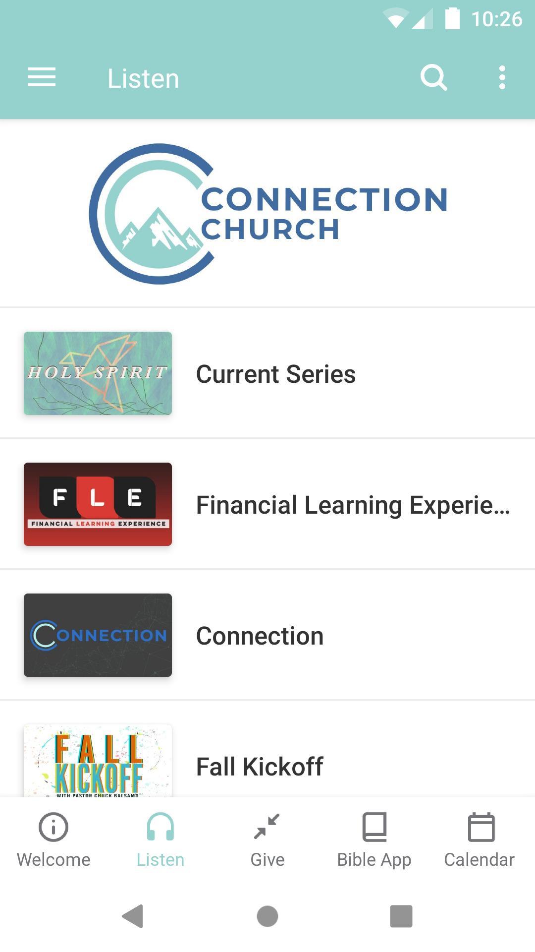 This is the Official Connection Church Mobile Application. When you download this FREE app, you're only a tap away from Pastor Rich Holmes weekend messages. You'll also have access to our services so you can experience Connection Church throughout your week.