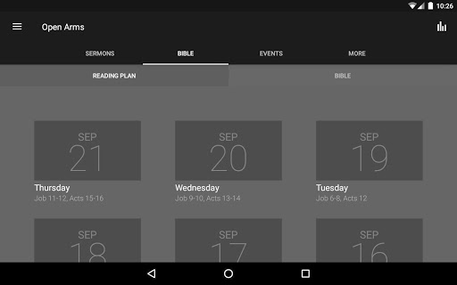 The Open Arms Church App was developed with the Subsplash App Platform.
