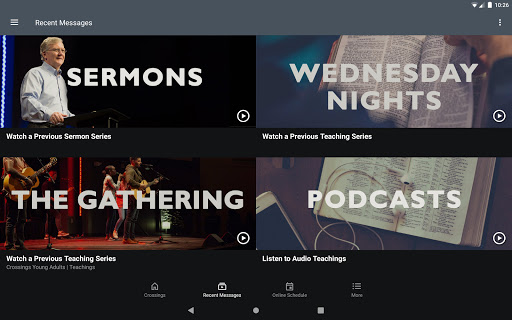 With the Crossings App, you can connect with Crossings anywhere you go. The Crossings App allows you to access the latest sermons, teaching series messages, worship music, weekly devotions, events, classes, and more whenever you like! You can even conveniently live stream Sunday sermons and Wednesday night teaching series messages all through the App!