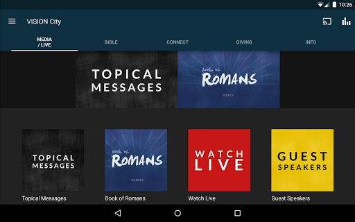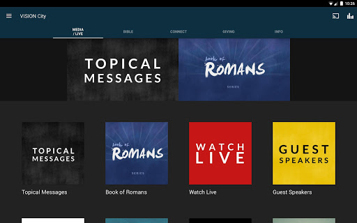 The VISION City app was developed with the Subsplash App Platform.