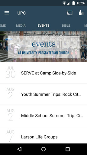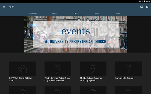 The University Presbyterian Church app was developed with Subsplash App Builder.