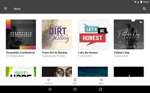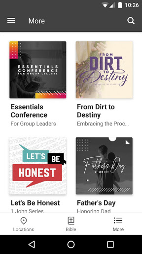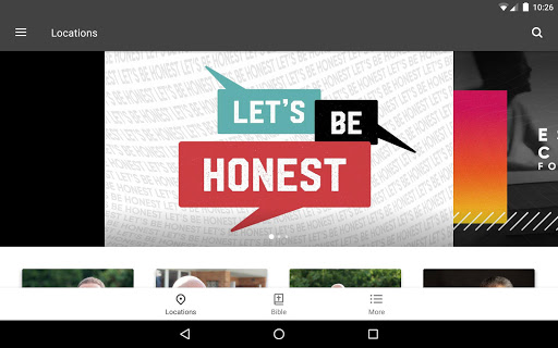 • Bible: Our app is designed to be used every day! Pull up the Bible on Sundays during the message, listen to the audio Bible throughout the week, and follow along with a daily Bible reading plan.