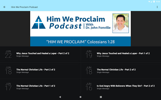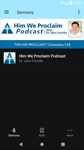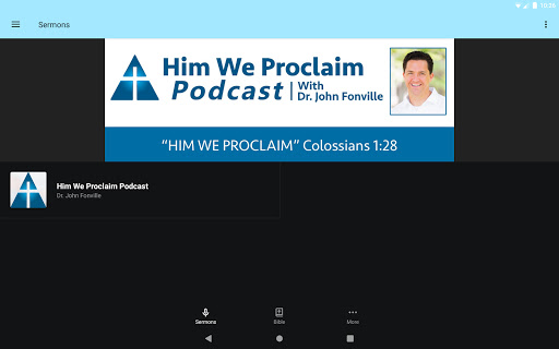 Him we Proclaim! The Him We Proclaim Podcast App links you to the radio outreach ministry of Dr. John Fonville of Jacksonville, Florida. You can hear John's daily 26-minute radio/podcasts for in-depth teaching into God's Word and a focus on the Gospel that is so refreshing.
