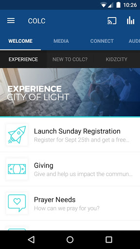 The City of Light Church App was created with the Subsplash App Platform.