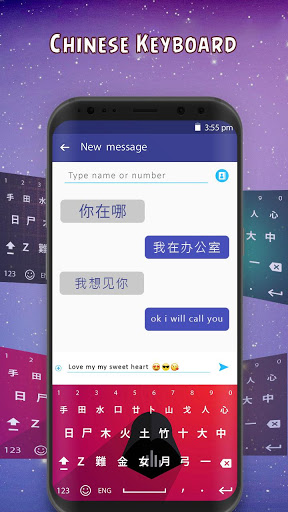 We believe that you will like this beautiful Chinese keyboard with Keyboard themes. Chinese typing keyboard decorates your mobile keyboard with beautiful stylish keyboard background and trendy keyboard buttons. Chinese keyboard is two in one language keyboard with English and Chinese Language. Download Fancy Chinese keyboard and enjoy Colorful Chinese typing Effects. Chinese keyboard with Chinese Language is designed free for all Android Mobiles and Tabs. Get a Chinese keyboard with theme and popular emojis for your android Mobile. Chinese keyboard has an option of Photo keyboard set your photo as keyboard background. Install Chinese keyboard and Apply to use this Chinese keyboard to send cute Emoji.