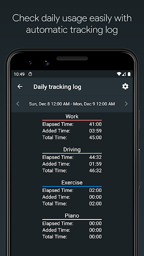 Please note that the daily tracking log is not able to keep track of time beyond timer history (1000 events). If you need longer records, please consider using a separate time tracking tool. For now, the focus of the app is easy-to-use timers. If users request more sophisticated time tracking then that could be a possibility for the future.