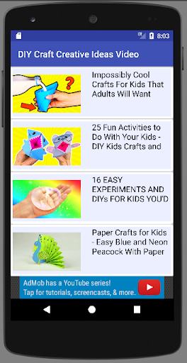 This is a free app for crafts lovers, its give the user Crafts videos tutorials like diy bracelets ideas step by step, diy craft creative ideas step by step, diy crafts step by step,diy gift box step by step, diy paper flower craft step by step video. Its one of the best collection of crafts in all diy video apps.