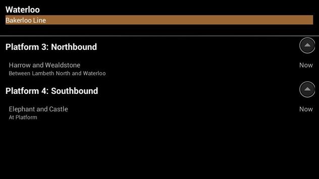 * View a live departure board for the Underground and DLR for the next train departing on each platform.