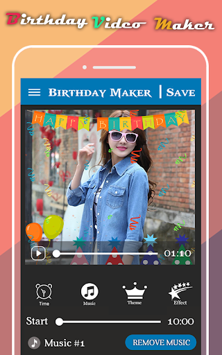 Birthday Photo Movie Maker App have reach set of Birthday different themes to apply on Birthday photos to create video from photos and Birthday music.Incredibly easy to use, yet highly powerful and has many options to customize and make it personal.
