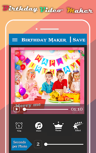 Birthday Photo Movie Maker App set the photos in order with the perfect photo frame, music and animation to create a lovely video,Create Birthday video in slide show style with your images, music and animation.