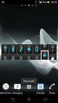 Change screen brightness instantly, change ringer mode instantly, or maybe you want to enable WiFi which is done with just one click! Sometimes you need WiFi settings when you have found a new wifi spot, just drag up the WiFi button and there will be a link to the Wifi settings. This is the way the app works in general when using Bluetooth, GPS, NFC and many other functions. On top of the list, a switch button, drag the button up, and you will find the settings for that function on the bottom. Other great features are a mirror, ruler, screen light and LED light buttons that are as easy to find as the rest. This app also works as a battery power saver because it always shows status of functions that drain the battery and lets you turn them off.