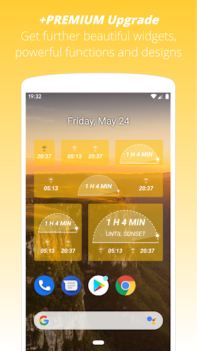 • Use the default widget displaying next sunrise or sunset event time nicely on your screen
