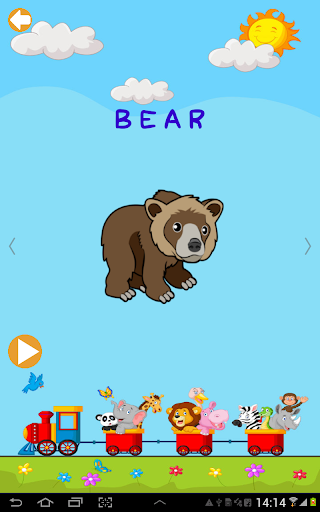 If you click on say animals, you will be lead to a screen where there will be pictures of all the animals. The child can click on them and the picture of the animal will appear, together with its spelling and the way it is pronounced.