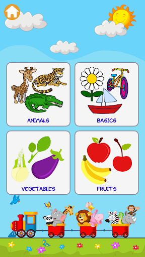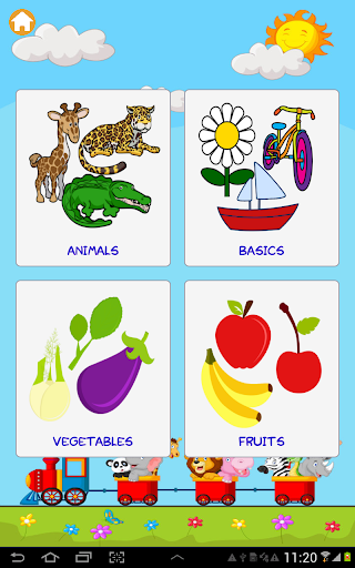 • This screen has four icons on it, namely animals, basics, vegetables and fruits. The names are self-explanatory. The child can select the topic they want to learn.