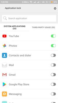 This application uses "USAGE APP" permission to lock the Apps.