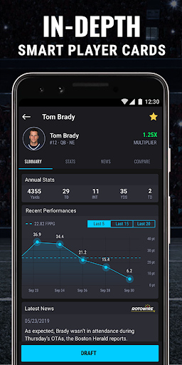 Performance graphs allow you to easily view a players recent stats and trends. Keep track of your favorite players for a quicker drafting experience with Favorites. Compare players to help you decide the best possible lineup.