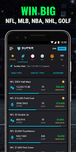 SuperDraft offers all of the major leagues: NFL, MLB, NBA, NHL, and PGA.