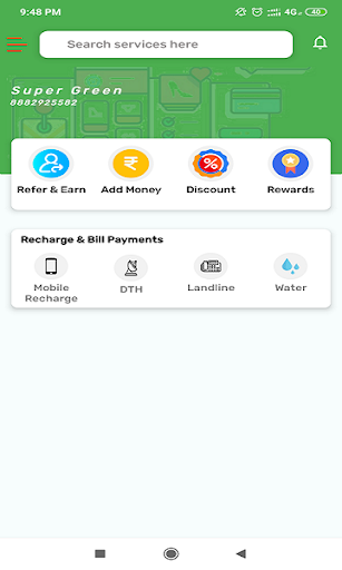 Super Pay app is managed by super green system. User can recharge online, pay bill and send money to directly bank account using this app and can earn extra benefits.