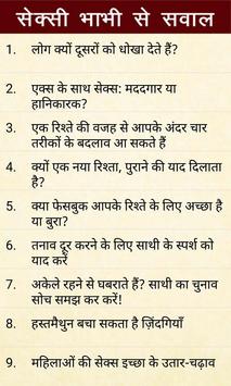 Sexy Bhabhi Se Sawal application is very useful for everyone who wants their personal life very happy. And this app gives idea that should you have relation in your office, on online website, online sex chat or not...