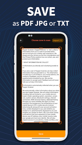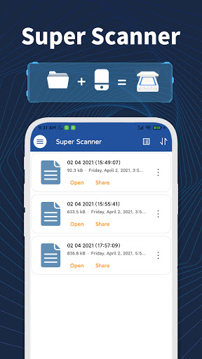 Super Scanner can turn your mobile phone into a portable document scanner. You can scan documents, photos, receipts, reports or almost everything.The scanned result will be saved to your device in image or PDF format. Bring great convenience to your work or study.