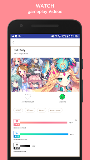 GUIK displays game cards containing related information(real gameplay videos, screenshots and etc.,), then you may browse all those game cards and swipe in particular direction according to your playing experience with it. There are four directions you can choose, Swipe down to played, up to wish, left/right to pass.