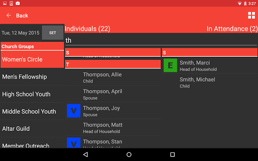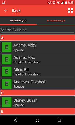 Attendance lets you take attendance for classes, groups and events for any date. Tap an individual to mark or un-mark their attendance, and your change is filed instantly in your database and will appear in standard CDM windows and reports.