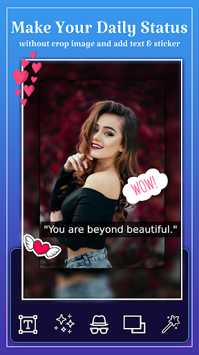 The App give you daily new readymade status to set on social media. same as your profile picture you can make status without cropping your image.