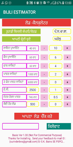 This app is designed to easily check your house or shop connected load as per PSPCL rules.