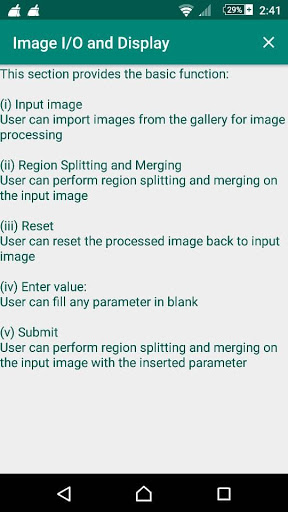 This software provides an application for the image processing learning purpose as the real-time portable simulation platform. It can be used as educational tool by the educators in the classes to increase the understanding among the students.