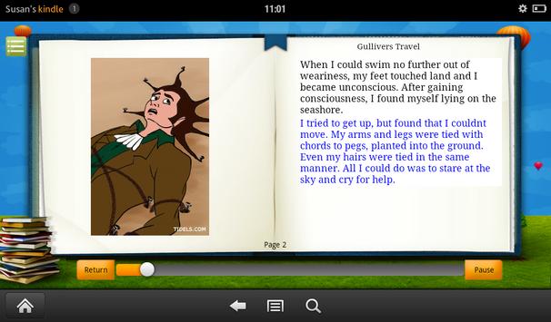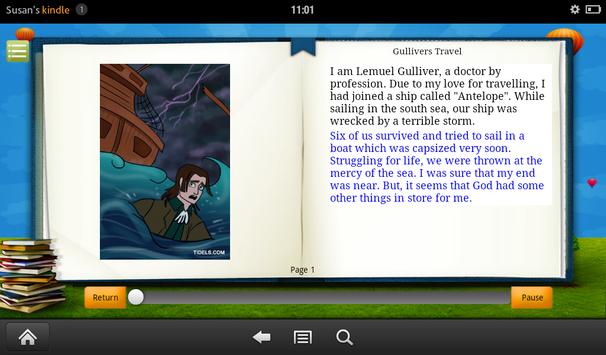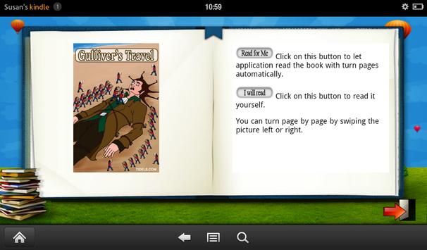 Click on "Read to me" to let the application read the book with page turns automatically. To read it manually click on "I will read". User can turn page by page by swiping the picture left or right.