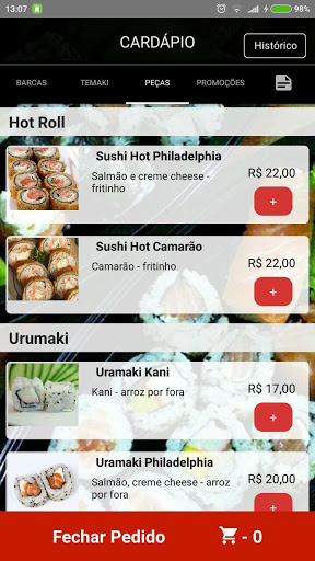Aplicativo da SushiFa Delivery para passar seu pedido de forma simples e automatizada. Entregas feitas em Presidente Figueiredo - AM.