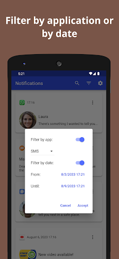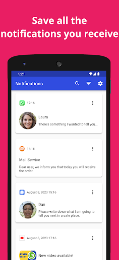 In summary, Notification History is your ideal notification tracker tool for keeping a record of all recent notifications on your device, including those deleted. With its intuitive interface and search tools, you'll be aware of everything happening on your smartphone or tablet. Download it now and keep a complete record of your notifications!