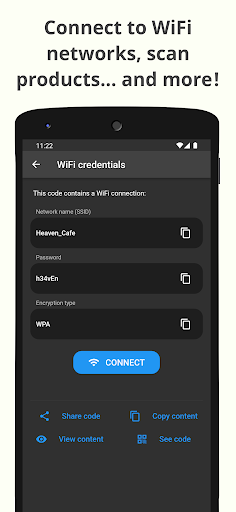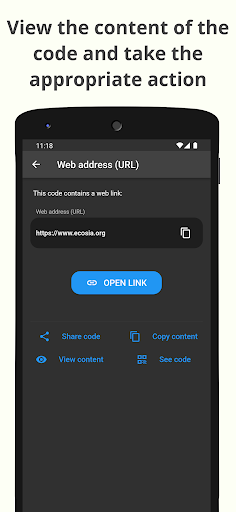 When you find a QR code or barcode and want to scan it to view its contents with the QR scanner, all you have to do is open the app and point your device's rear camera at the code. The QR code scanner feature will detect it and the details of it will automatically be shown to you. From there you can perform the appropriate action on the code depending on its type, for example opening a website or connecting to a WiFi network, as well as being able to view other details of the code.