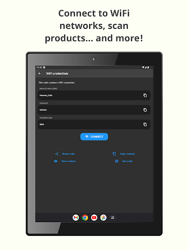 - Execute the correct action after scanning with the barcode scanner: open websites, connect to WiFi networks...