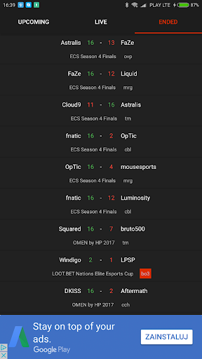 - Fast and simple live results of your favorite CS teams,