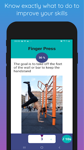 Street Workout and Calisthenics with this app. That will teach you step by step how to master a "muscle up" and a "handstand press" even if you are a beginner. Save your new record at each session and progress. you can find a lot of advice about nutrition, sleep, rest...