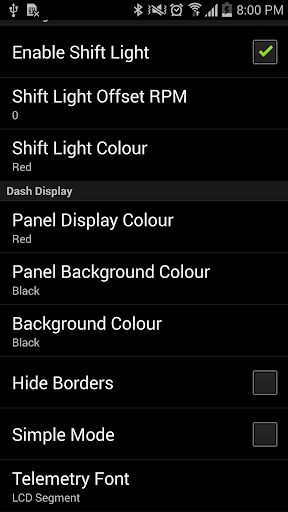 The application also features a Shift Light. Users can set the shift light colour and enter a shift light offset value if required.