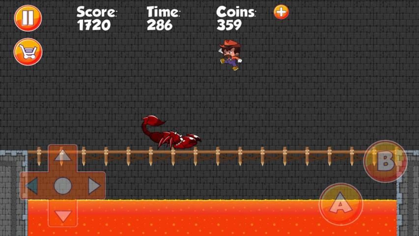 Join cowboy in his adventure, have fun in this game. Be careful the cute little monster, you can use bullet to fight them. Collect 100 coins to get one more life! Jump, Run, Shoot, Skating. Try you best to pass all the levels! Collect all stars can get more scores.Enjoy one of the best platform games ever. Download Super Cowboy now and start playing this amazing game!