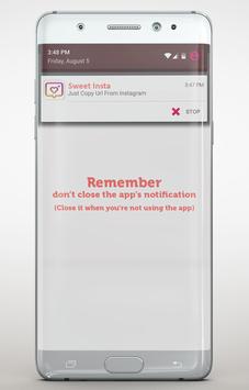 1/ Open Sweet - Instagram downloader once (keep notification to run service).