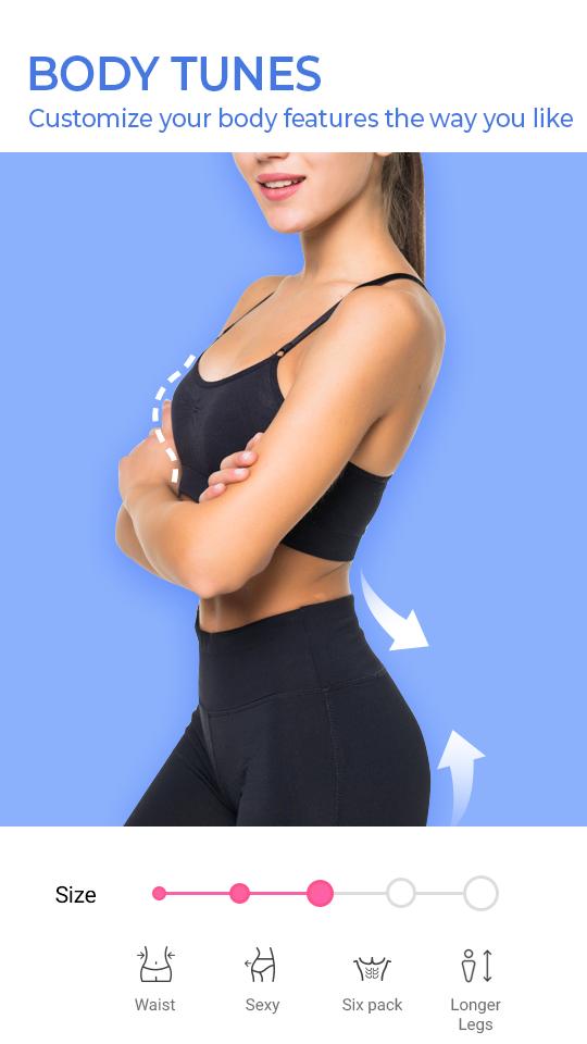◇ Slimming: One tap to possess models figure by legs and body slimming.