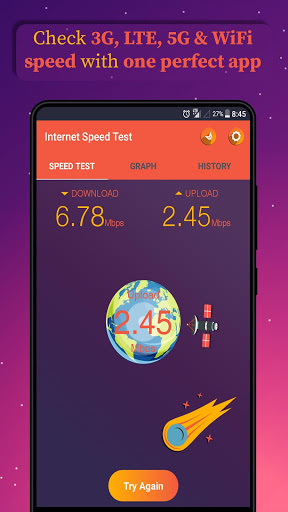 Turbo Internet Speed test is a free internet speed test utility app which can test speed for 2G, 3G, 4G, 5G, DSL, and ADSL. It's also a wifi analyzer that could help you test wifi connection. With just one tap, it will test your internet connection through thousands of servers worldwide and show accurate results within 30 seconds.