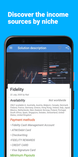 We’ve written lots about the different ways and requirements to make money. For that our application classifies the income sources by domain. We reviewed different platforms and provide you all information you need to start your business online.